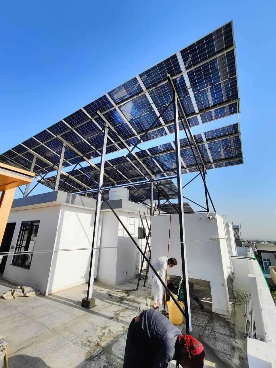 This 16kW system was designed and installed for a residential property in the G-15 sector. Featuring premium Jinko 585W panels and a high-performance Growatt inverter, the system is elevated on a custom H-Beam structure to optimize solar exposure and preserve roof space. The on-grid design allows seamless integration with the grid, maximizing net-metering benefits and monthly savings.